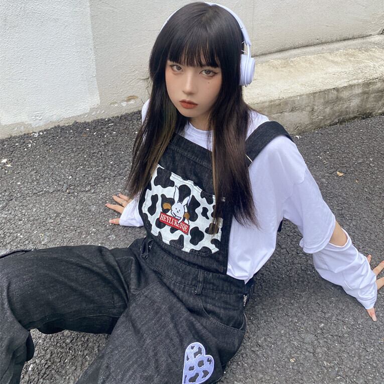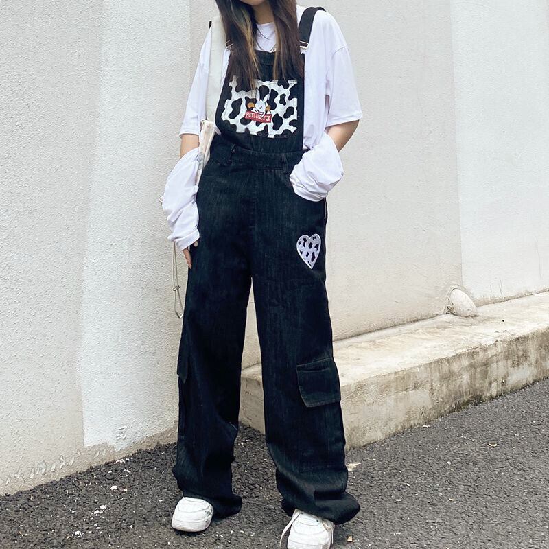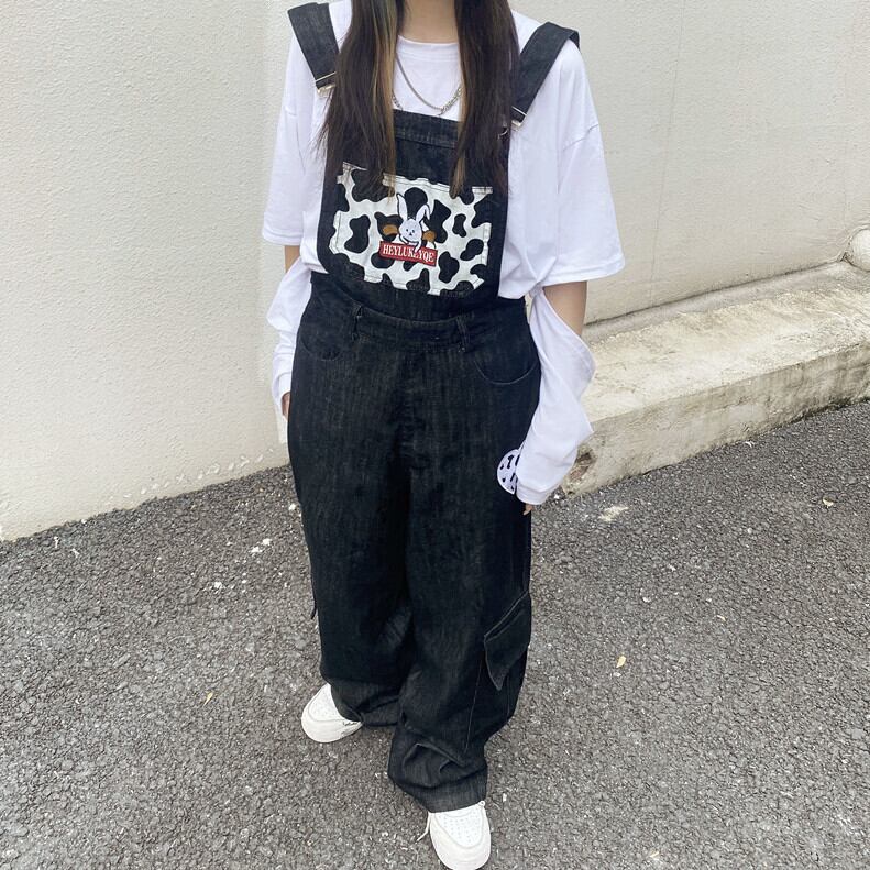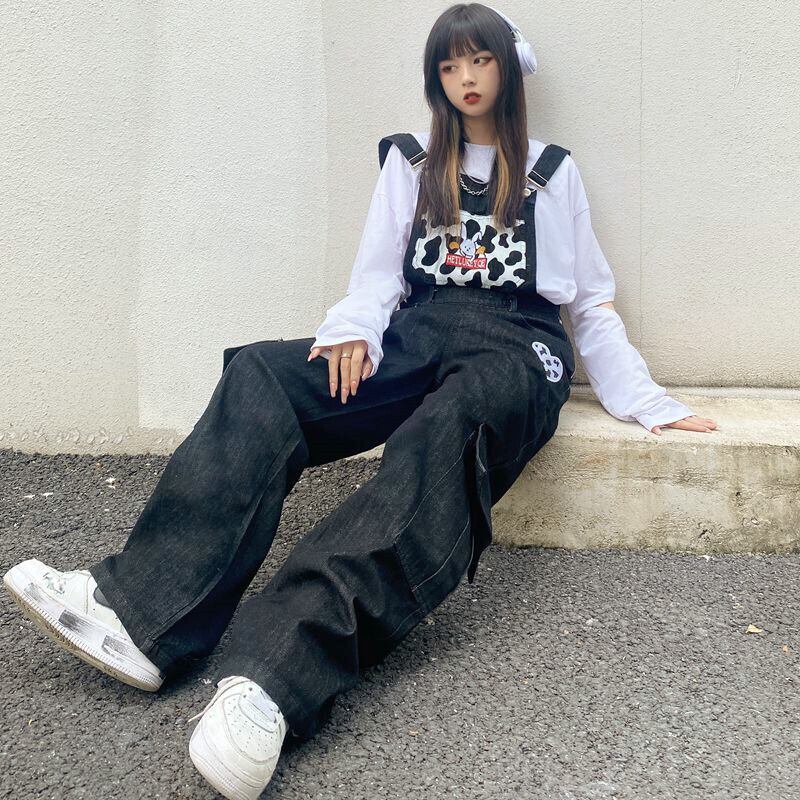 レディースオータムスタンダードプリント柄ジーンズ ルーズハイウェストウェストワイドレッグパンツ レトロ 秋物 ワイドパンツ Brother_is_Style51594576759