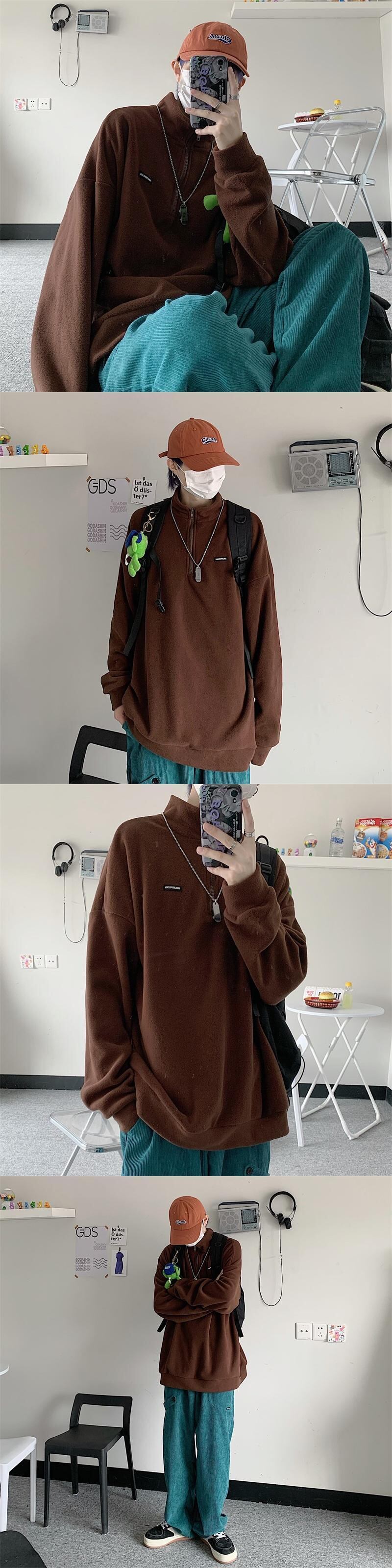 オータムスタンダードプルオーバー セーター ベルベットルーズトップス ロング レトロ 秋物 Brother_is_Style23398289396