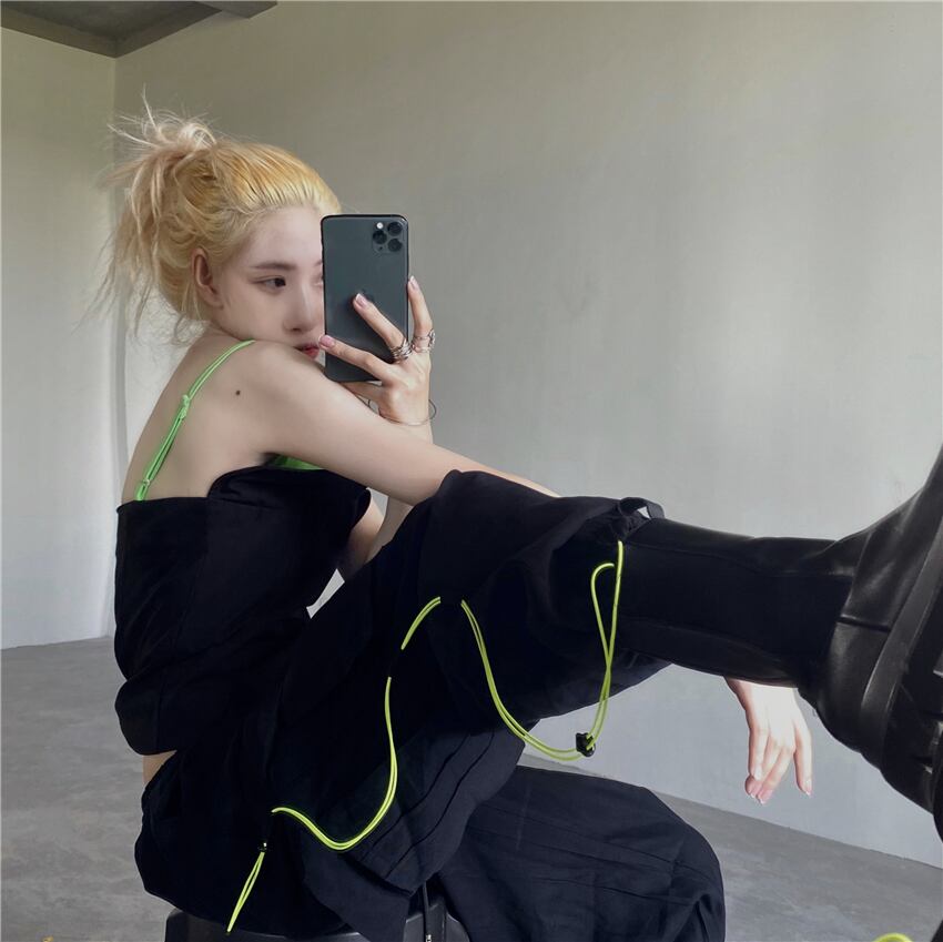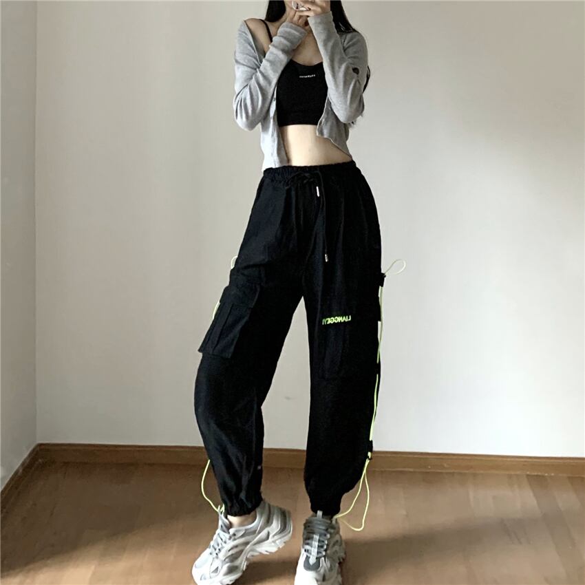 パンツ オータムブラックカジュアルルーズハイウェストウェスト薄手 ストリート 秋物 Brother_is_Style50246362127