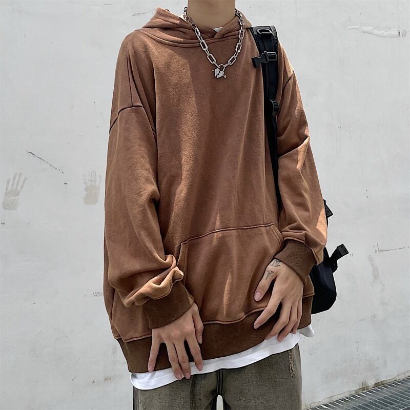 スタンダードソリッド カラーフードセーター コート ルーズトップス レディース ロング レトロ ソリッドカラー Brother_is_Style78231771871