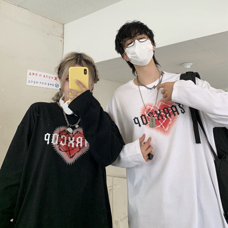 オータムプリントTシャツ ルーズブラックトップス レディース ロング 秋物 Brother_is_Style31919343772