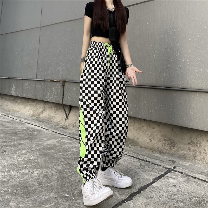 パンツ オータム薄手格子柄ルーズハイウェストウェストカジュアル 秋物 Brother_is_Style64140026072
