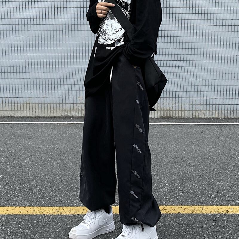 パンツ オータムスタンダードプリントカジュアルルーズハイウェストウェスト薄手ワイドレッグ レトロ 秋物 ワイドパンツ Brother_is_Style16820569566