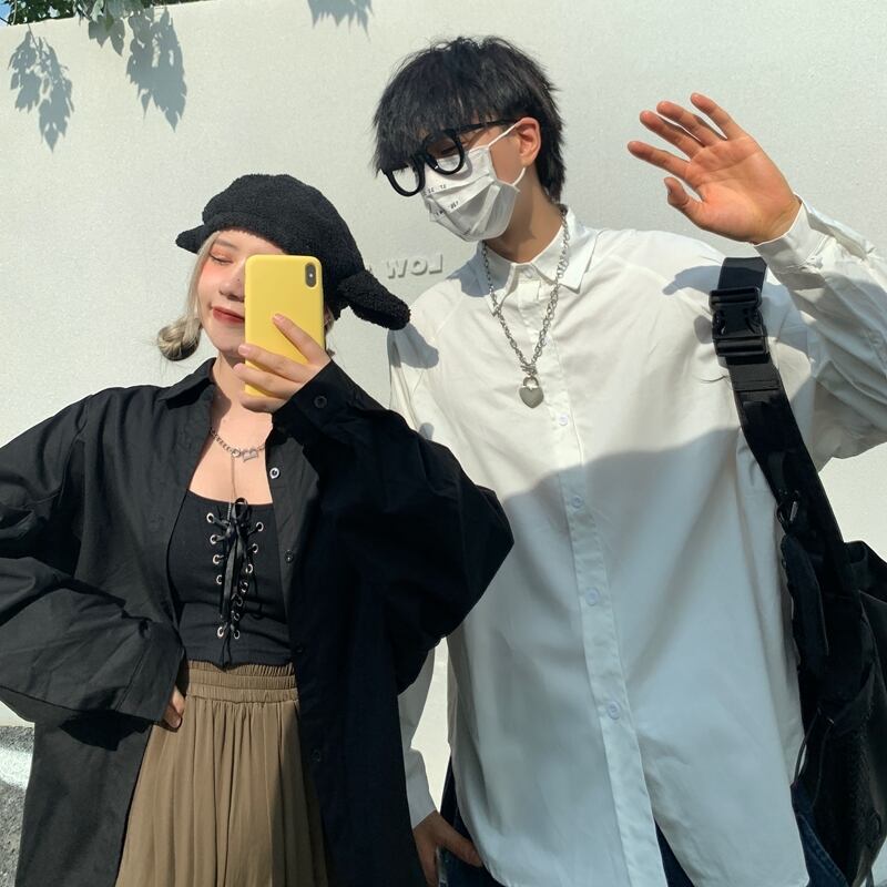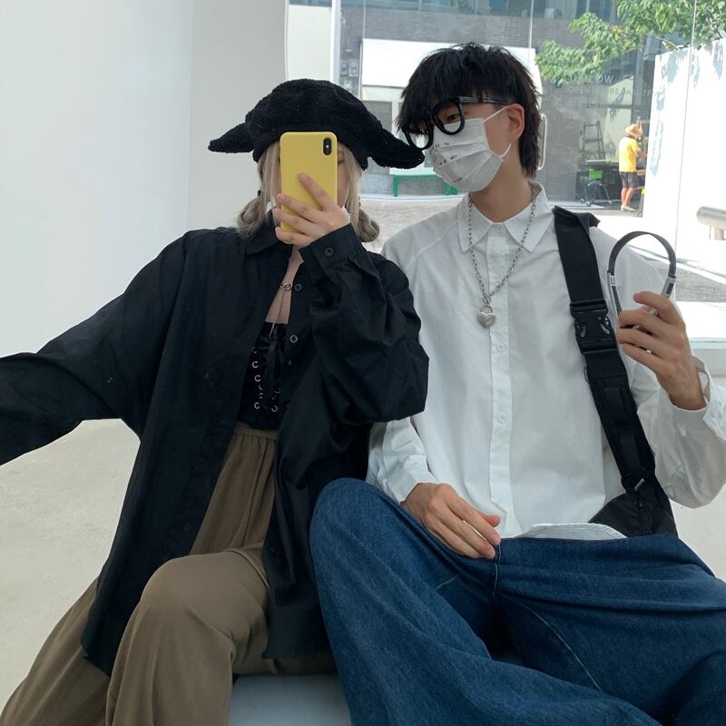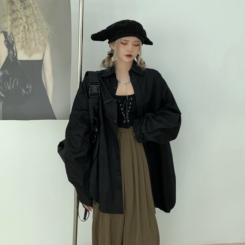 ブラックシャツ オータムスタンダードスタイルジャケット ルーズカラートップス ロング レトロ 秋物 スクウェア Brother_is_Style13169635166