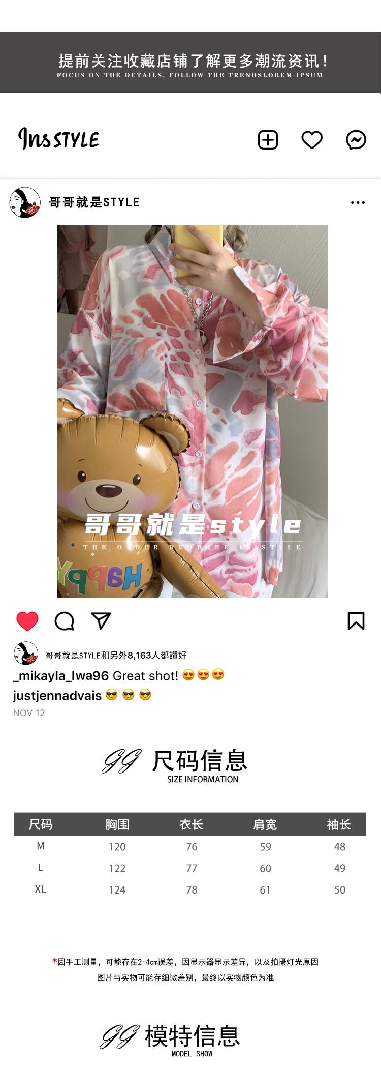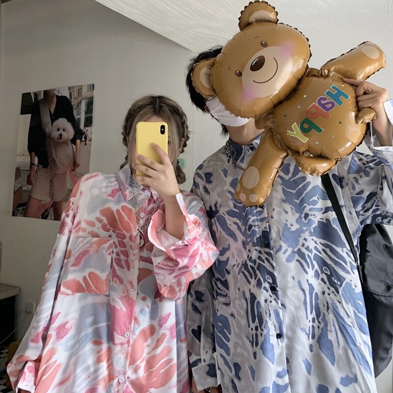 シャツ オータムスタイルスタンダードプリントジャケット ルーズカラー ロング レトロ 秋物 スクウェア Brother_is_Style12812565564