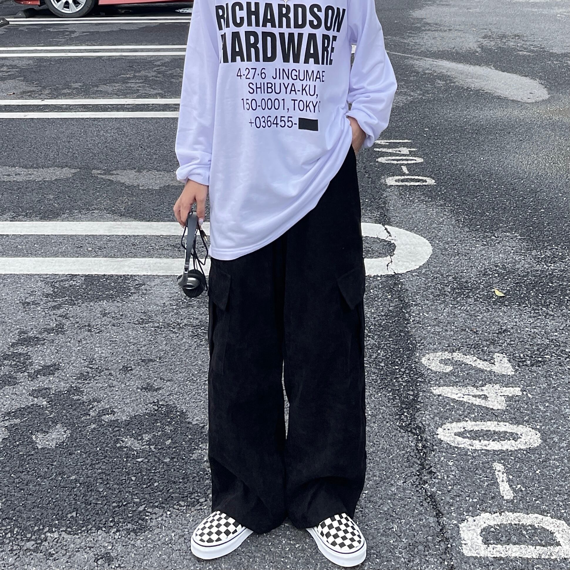 パンツ オータムコーデュロイハイウェストカジュアルルーズオーバーオール 秋物 Brother_is_Style20921678009