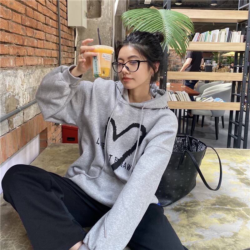 オータムスタイルプリントフードセーター コート ルーズトップス レディース ロング 秋物 Brother_is_Style83632901898