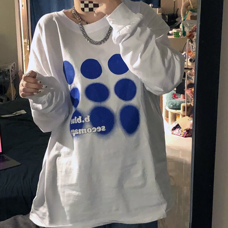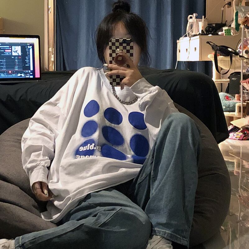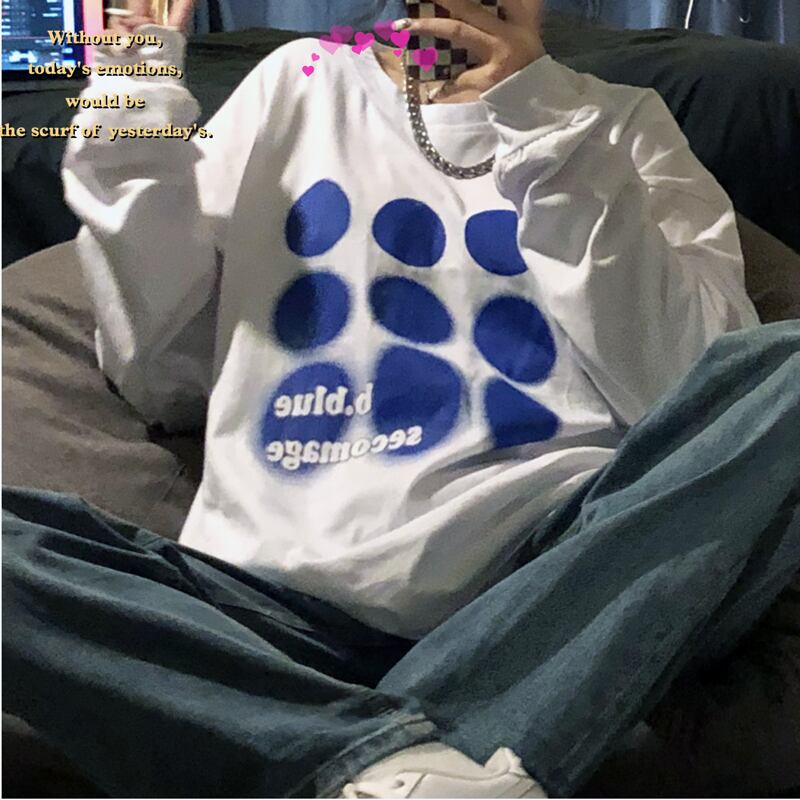 オータムプリントTシャツ シャツ ルーズトップス ロング コットン 秋物 Brother_is_Style74621789825