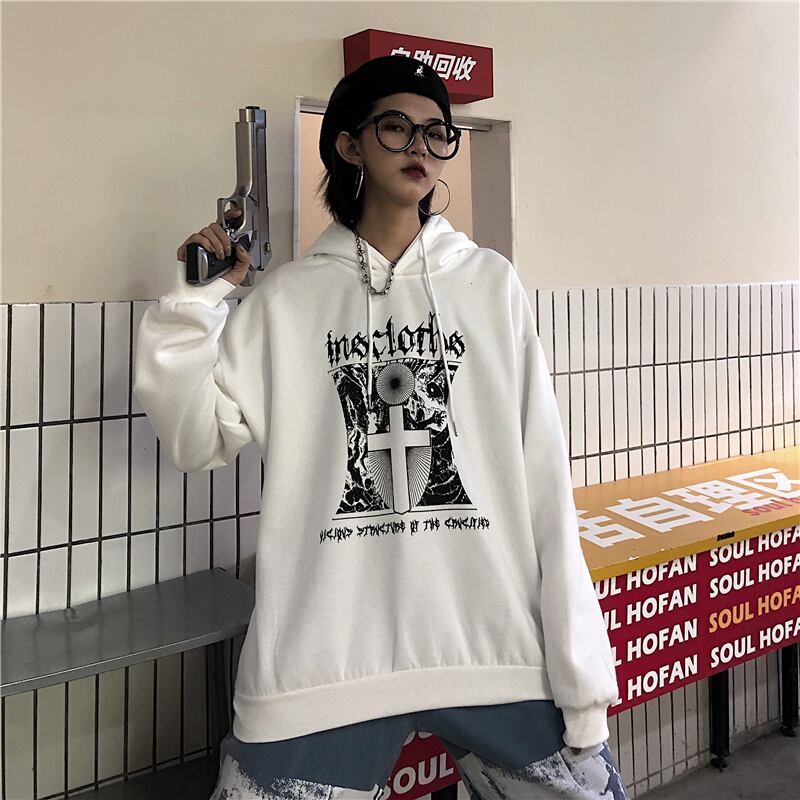 Tシャツ ジャケット ウィンターダークスタンダードプリントルーズフードトップス レトロ ストリート 冬物 Brother_is_Style46335486115