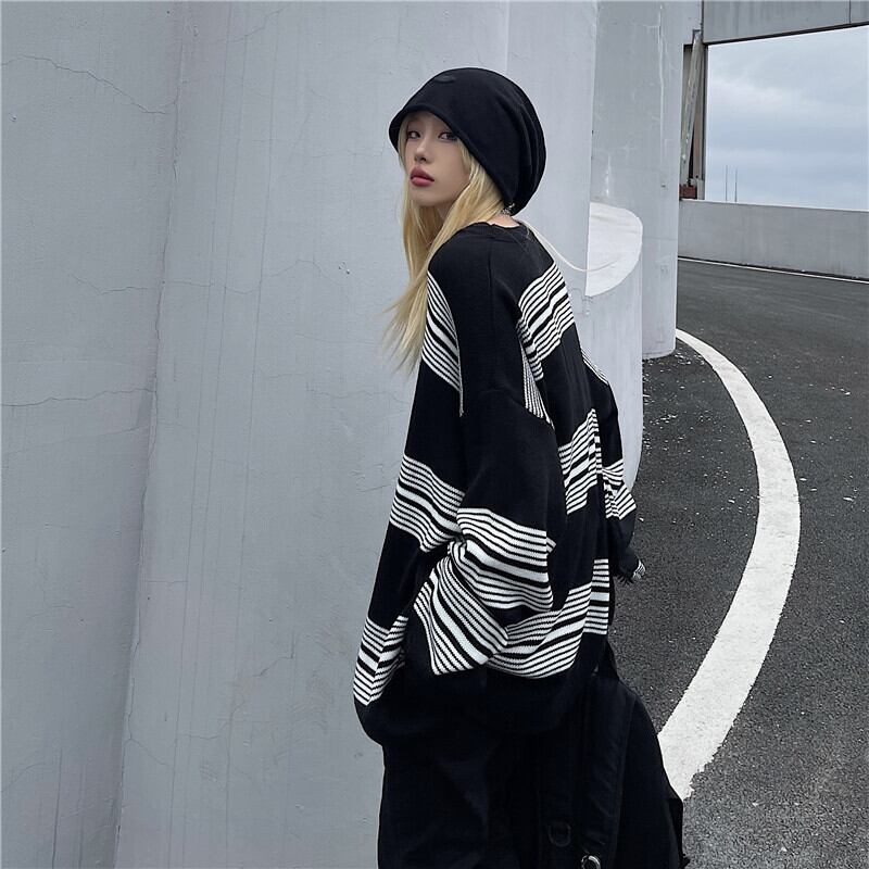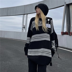 セーター ジャケット レディースオータムウィンタールーズスタンダードストライプラウンドネックプルオーバー ニットトップス レトロ 秋物 冬物 Oネック Brother_is_Style96017196796