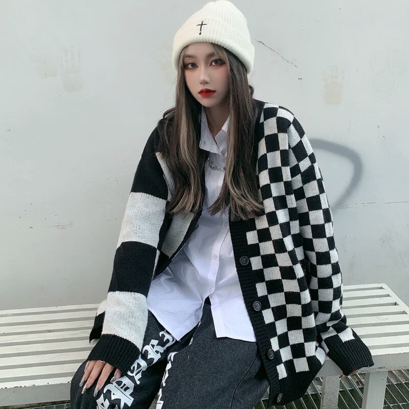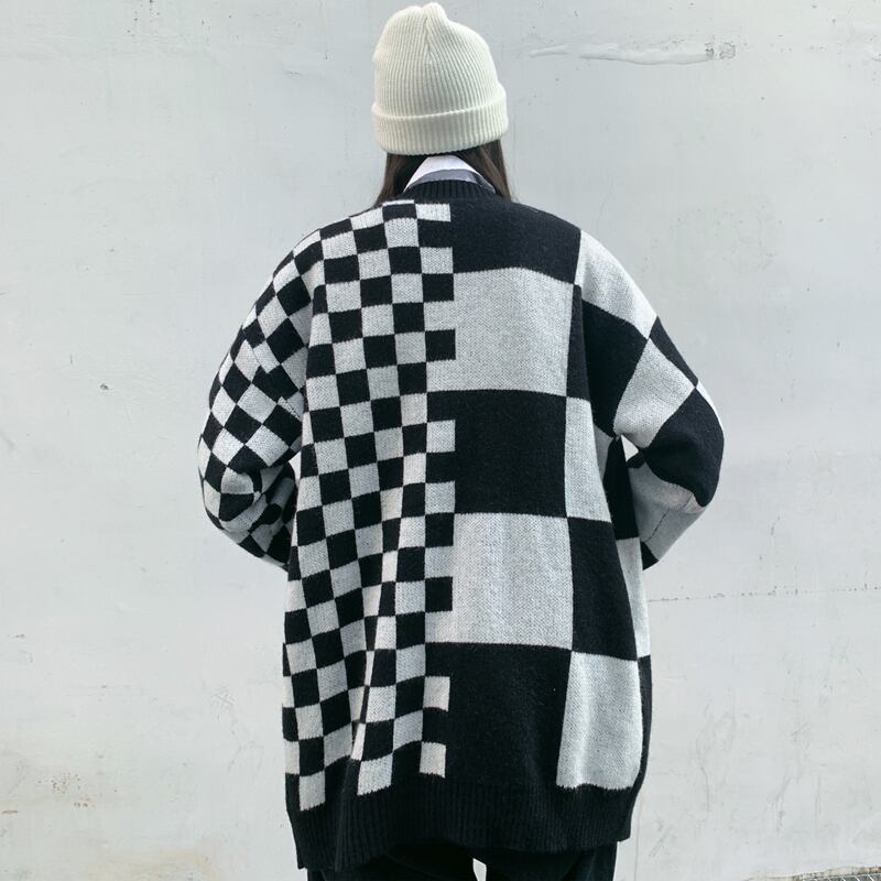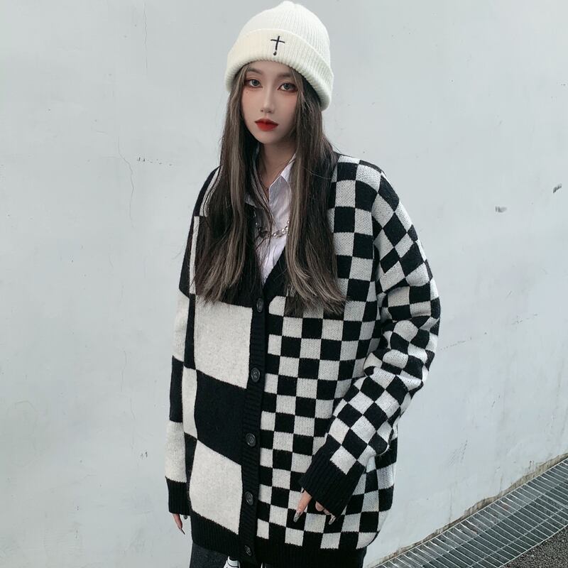 セーター ジャケット レディースオータムウィンタースタンダードブラックホワイトルーズカラーニットトップス レトロ ストリート 秋物 冬物 Brother_is_Style11108746307