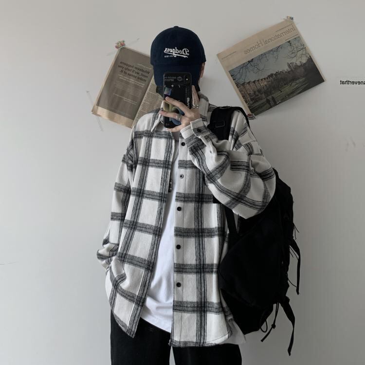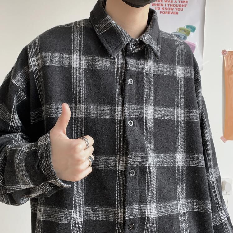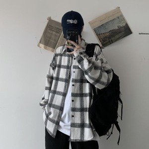 シャツ オータムウィンタースタンダードカラールーズ格子柄トップス レトロ 秋物 冬物 スクウェア Brother_is_Style44659449990