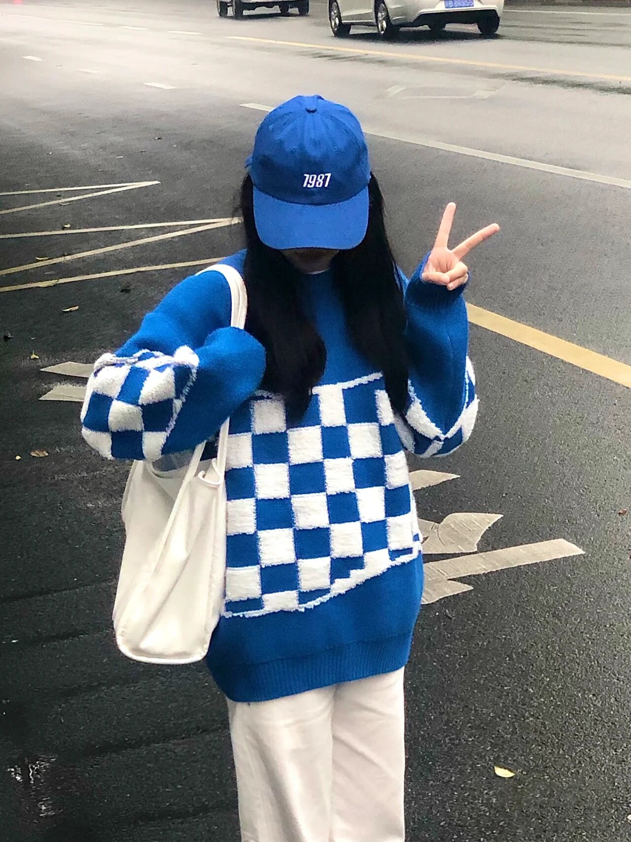 スタンダードブルーセーター コート ルーズジャケット レトロ ウィンター 冬物 Brother_is_Style45242710544