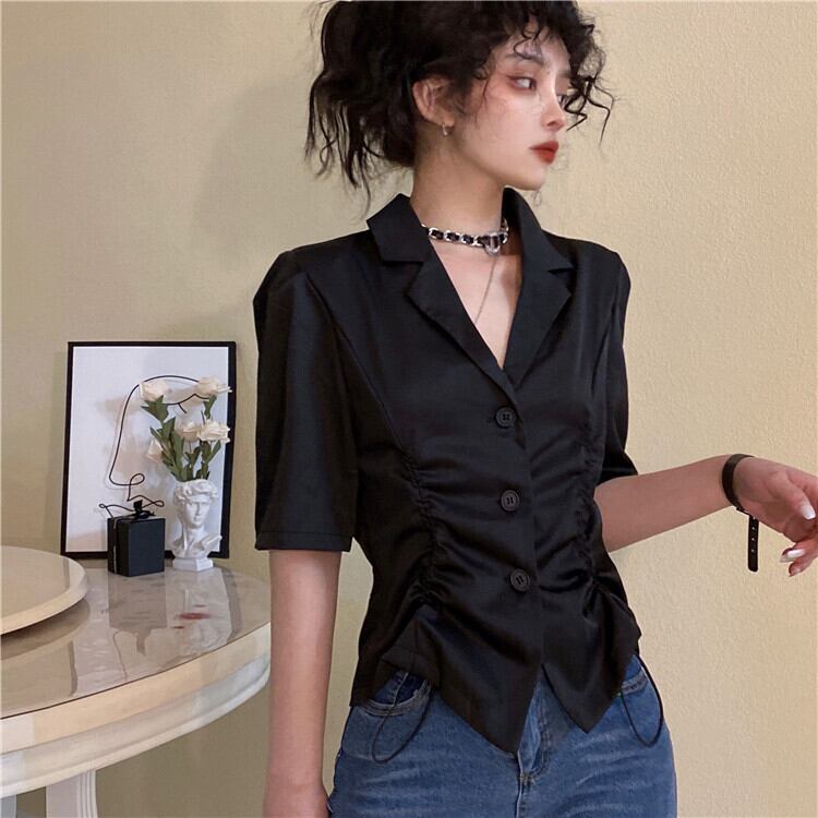 シャツ サマーギャザースリムショートカラートップス 夏物 Brother_is_Style12510975852
