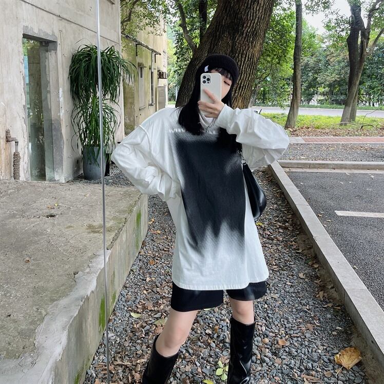 オータム薄手スタンダードセーター コート ルーズブラック自然派ラウンドネックトップス レトロ ストリート 秋物 Oネック Brother_is_Style55529656357
