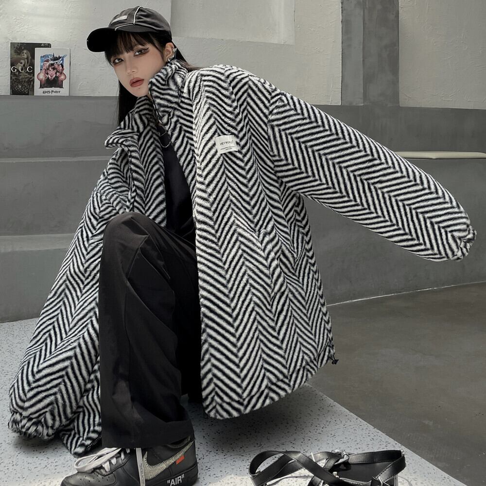 スタイルウィンターウェーブストライプジャケット ルーズレディース コットン 冬物 Brother_is_Style43133086296
