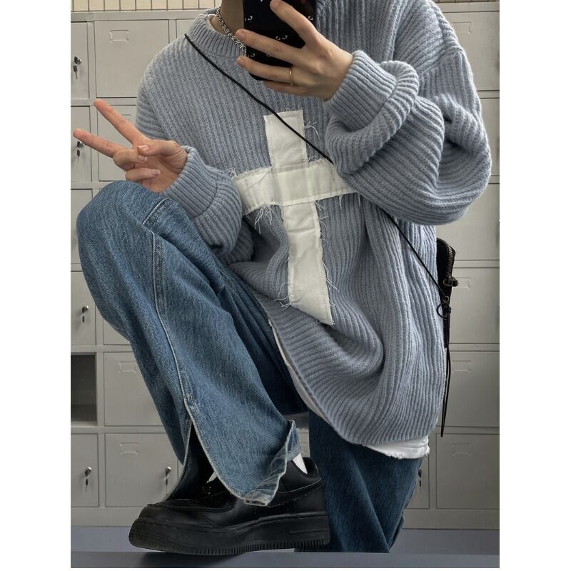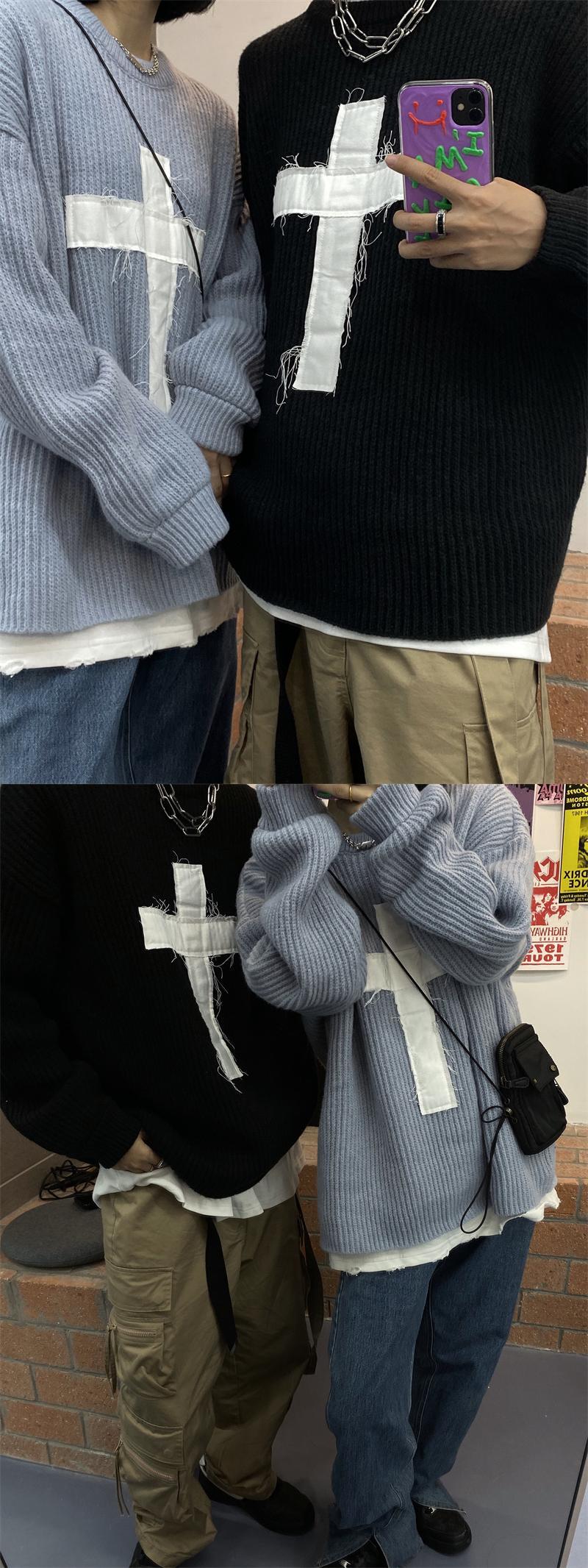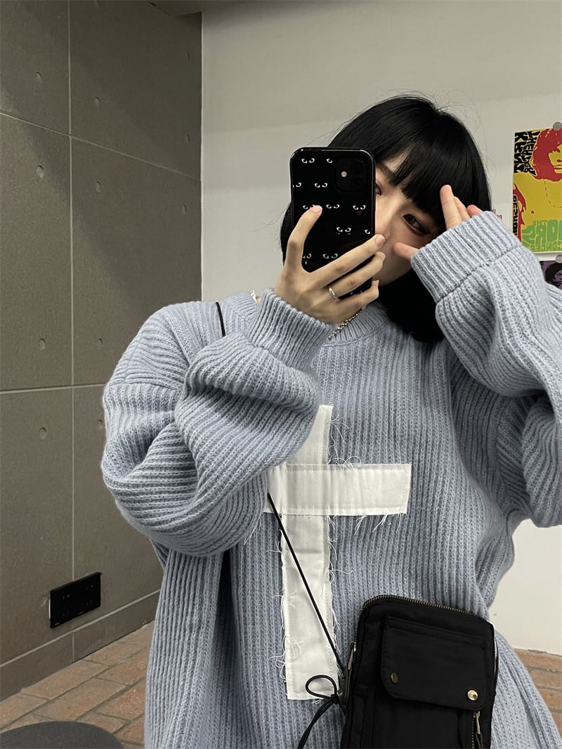 オータムウィンタークロスラウンドネックセーター コート ルーズニットトップス レディース ストリート 秋物 冬物 Oネック Brother_is_Style77267652562