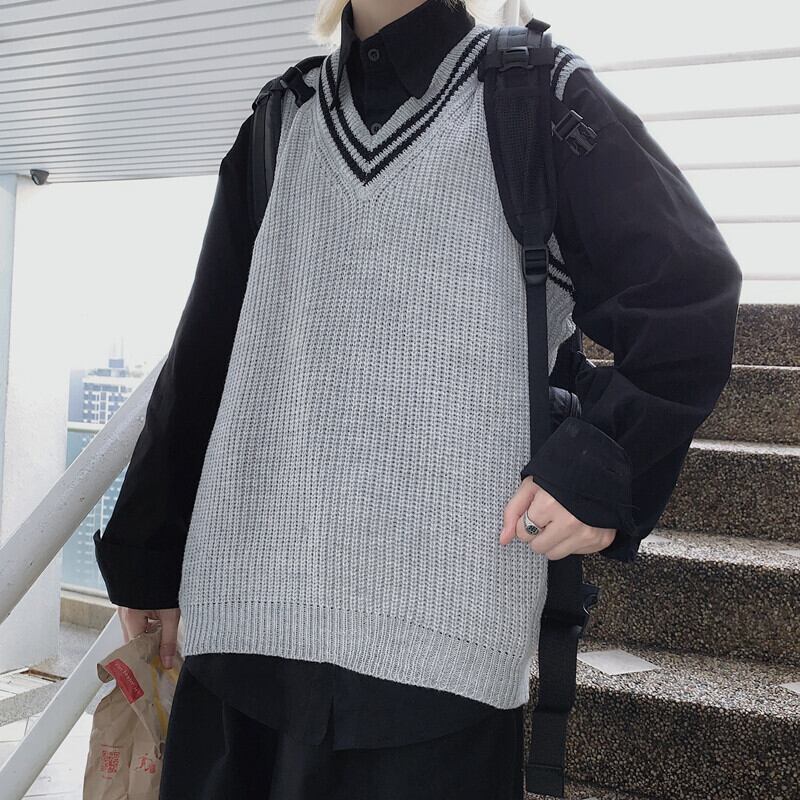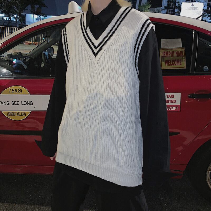 ニットオータムウィンタースタンダードVネックルーズノースリーブセーター ジャケット レトロ 秋物 冬物 Brother_is_Style36117840791