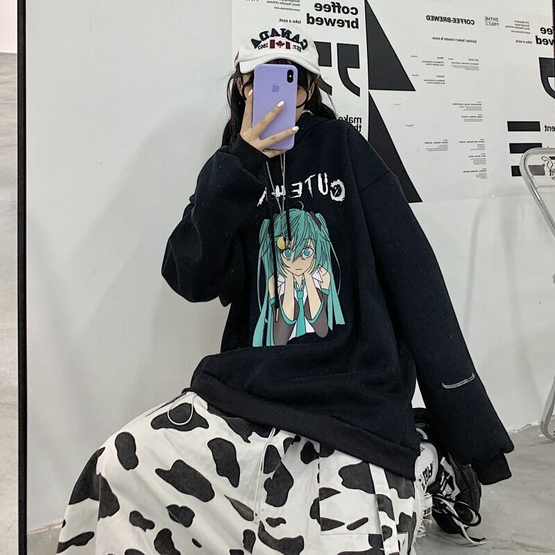 オータムウィンタープリント柄ベルベットフードスウェット ジャケット ルーズレディース 秋物 冬物 Brother_is_Style20173769118