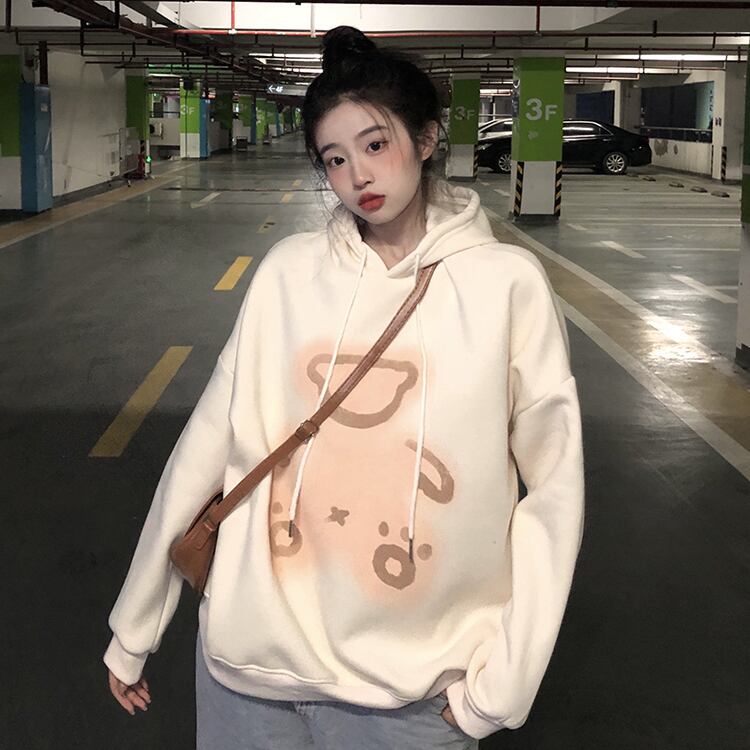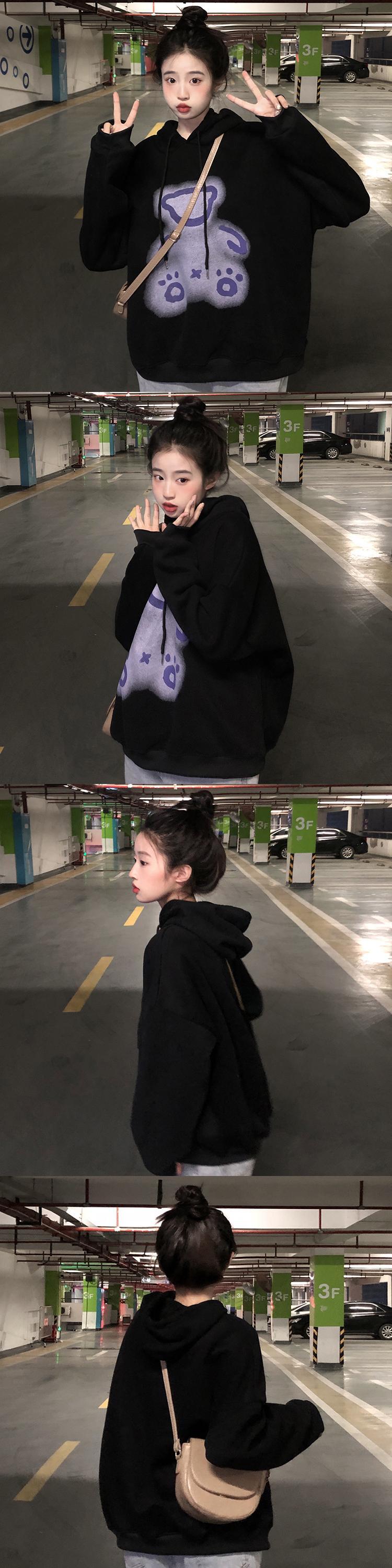 オータムウィンタープリントベルベットフードスウェット ジャケット ルーズレディース 大人ガーリー スウィート キュート カジュアル 秋物 冬物 Brother_is_Style59555906740
