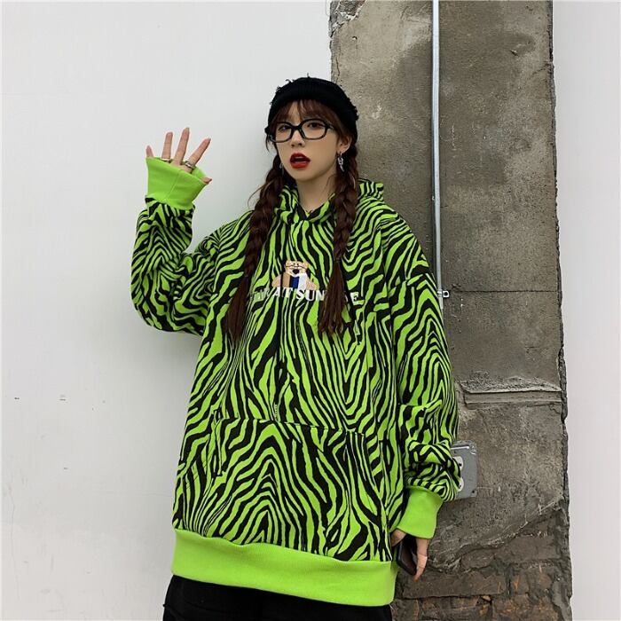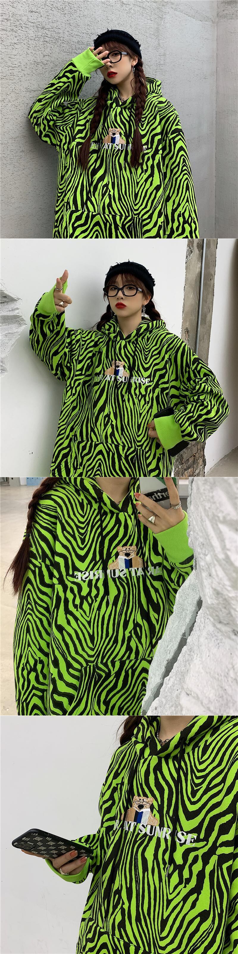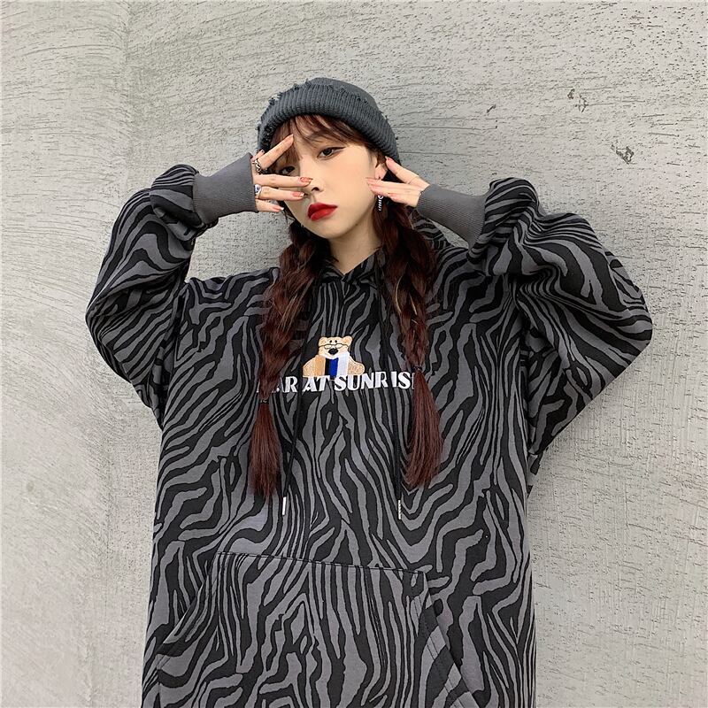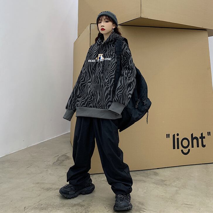 ウィンターベルベットプリント柄刺繍ルーズフードトップス コットン ストリート 冬物 Brother_is_Style65848544186